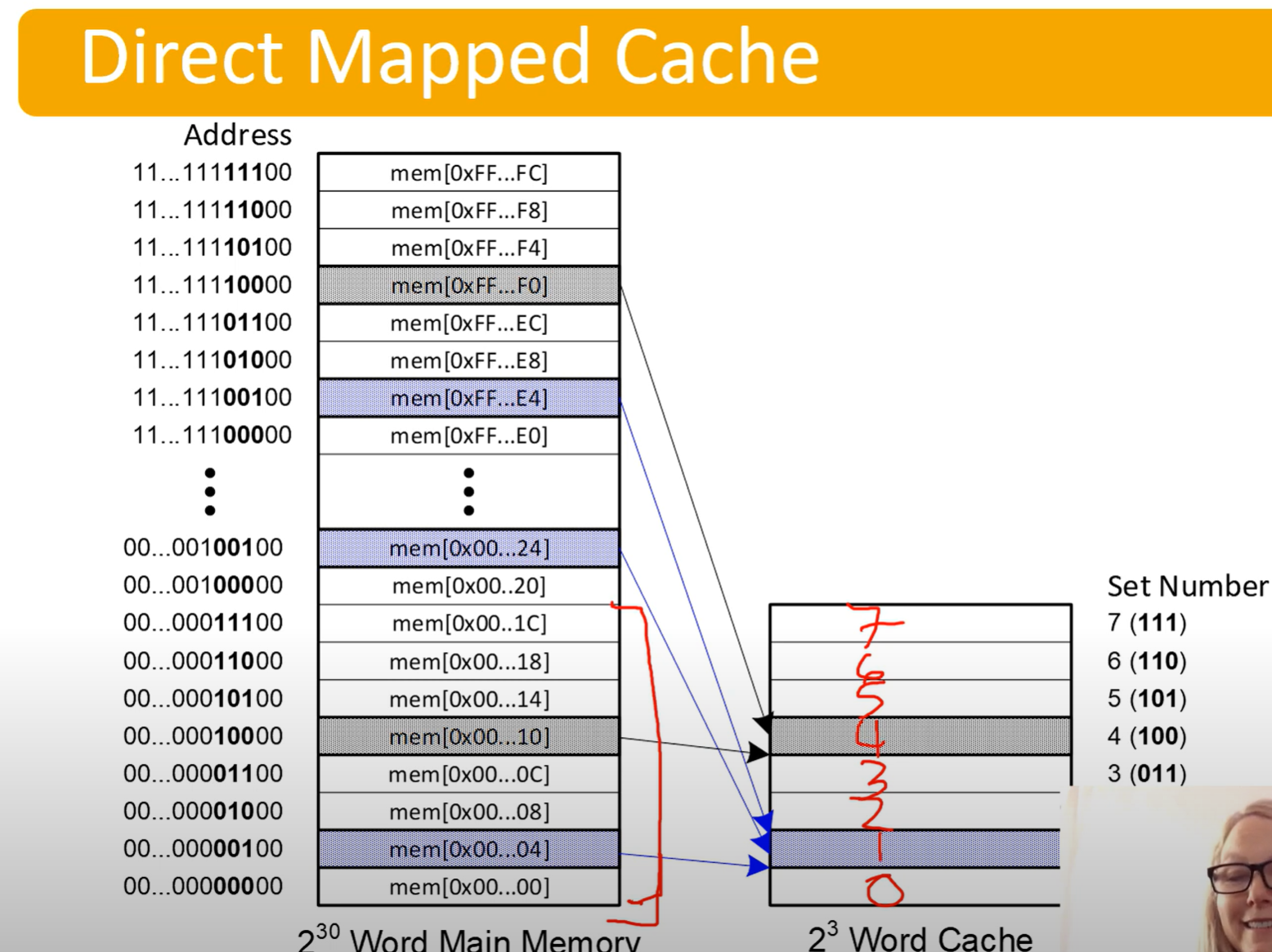 - Notice how they are not mapping to the same exact line as the direct mapped cache, but to the same ‘set’.