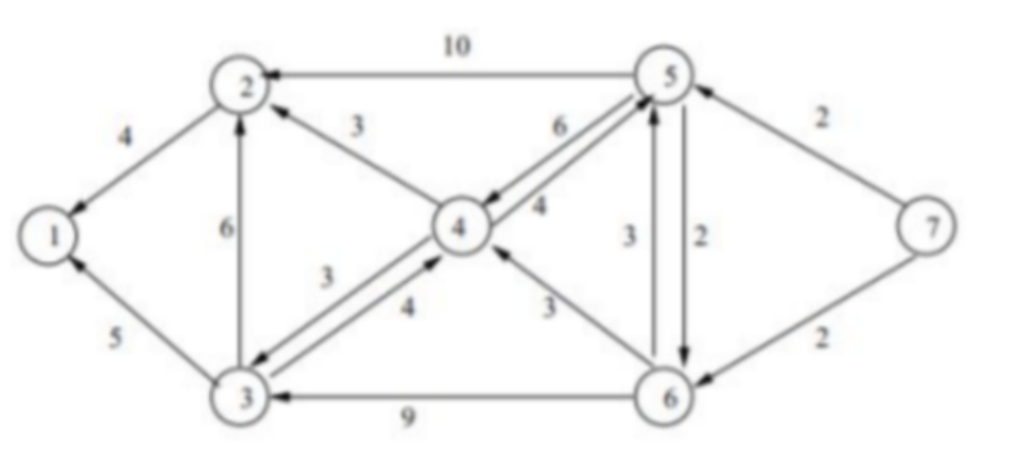 Find the shortest path tree from every node to node 1 for the graph of Fig.1 using the Bellman-Ford and Dijkstra algorithms. Describe the algorithmic change necessary to answer this question.