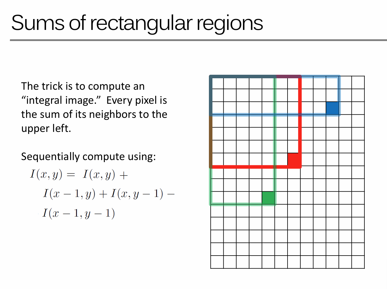 How do we compute the sum of pixels in an arbitrary "box"?