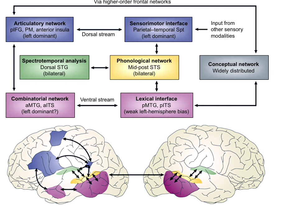 - Sensorimotor Interface: Sound -> Motor coordination of speech.