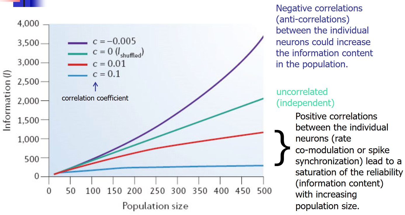 In principle, the reliability of the firing rate estimate could be constantly improved by adding additional neurons. However, this is only true when all neurons spike independently (no positive correlation).