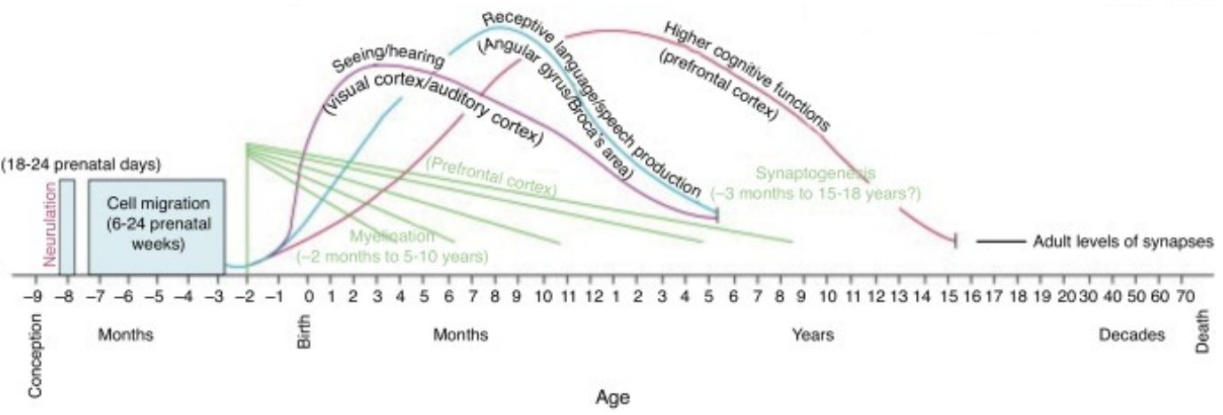 - Little post birth neurogenesis, but lots of synaptic changes