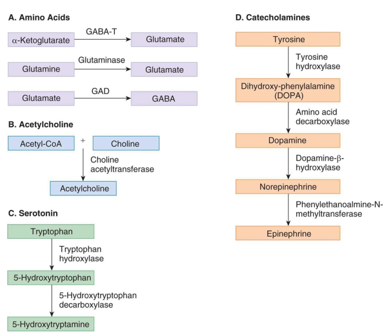 - Basic concepts related to neurotransmitter synthesis.