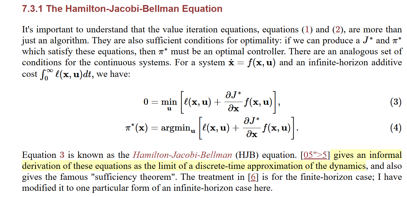 - If you find an equation J that satisfies the HJB equation, that’s sufficient. Theorem 7.1 HJB Sufficiency Theorem