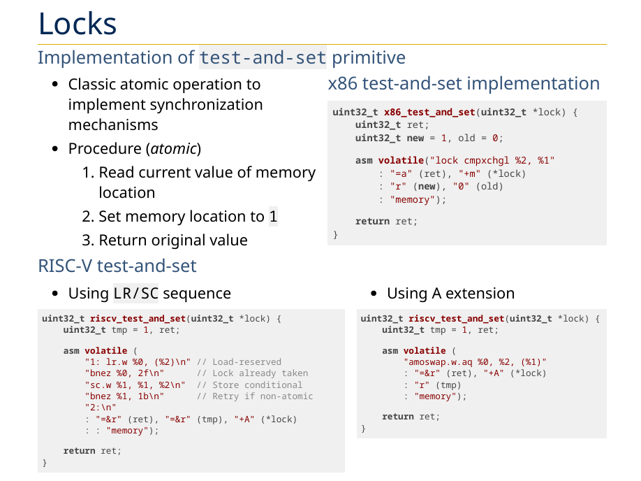 while (test_and_set(lock==1)) { thread_block(lock) }
