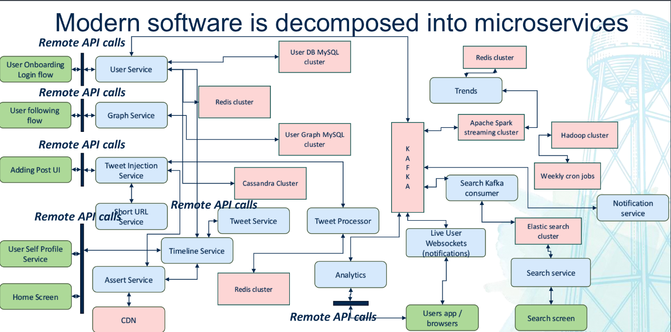 - Also hetergenous, now that everything is seperate they can be implemented in different languages (python, java, rust, etc)