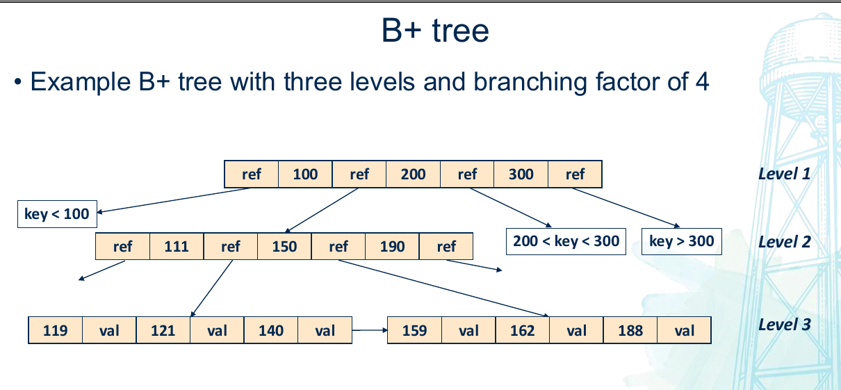 - Data only lives in the leaf nodes, intermediary nodes help navigation