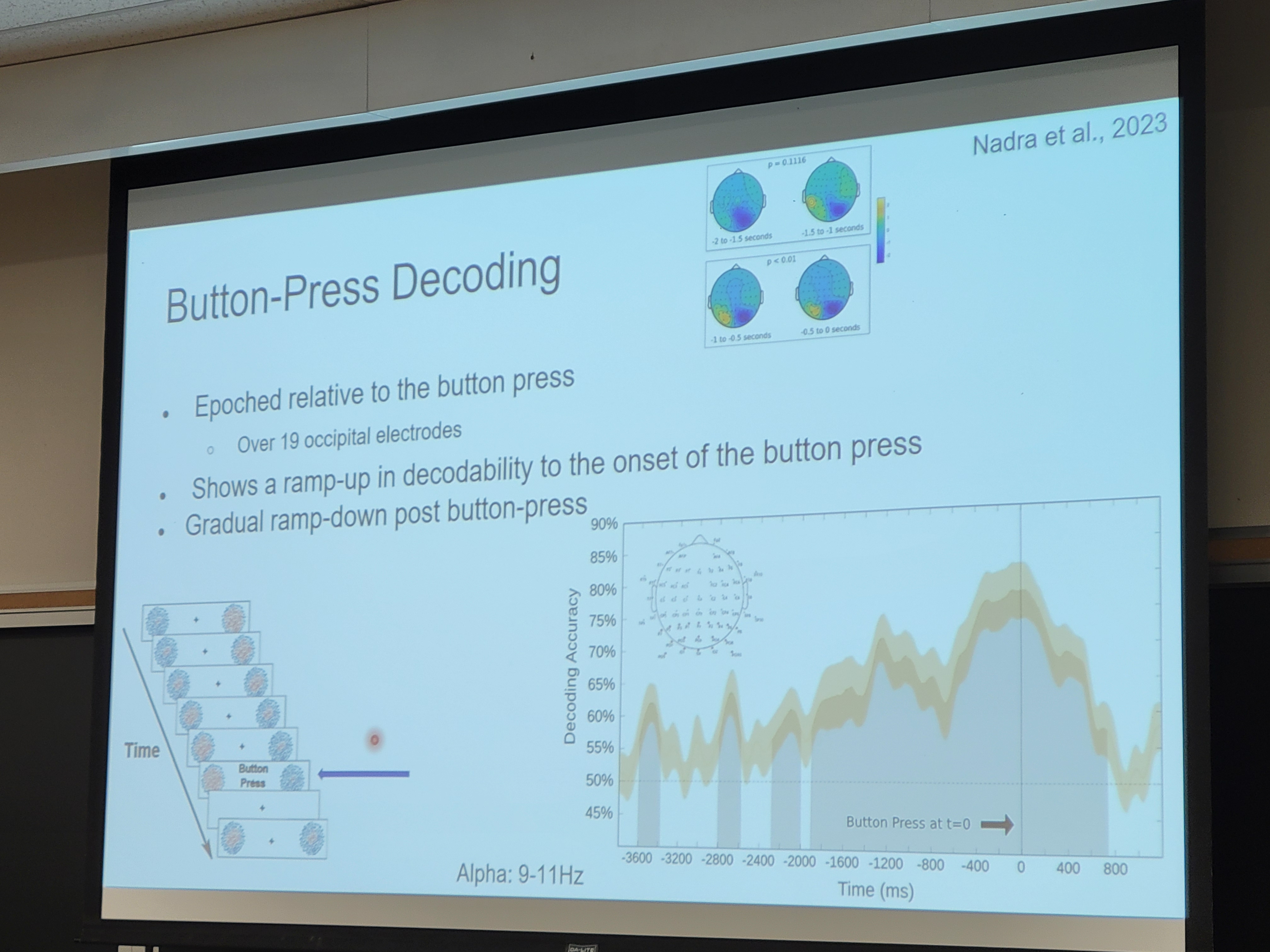- Shows a ramp-up in decodability to the onset of the button press