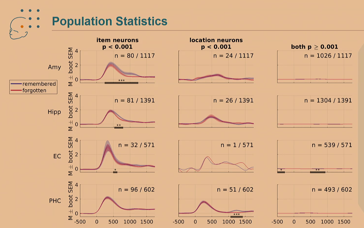 - Activity of item neurons in the hippocampus, amygdala, and EC determines successful long-term memory encoding of specific items.