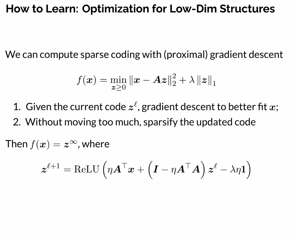 , gradient descent to better fit x - Without moving too much, sparsify the updated code