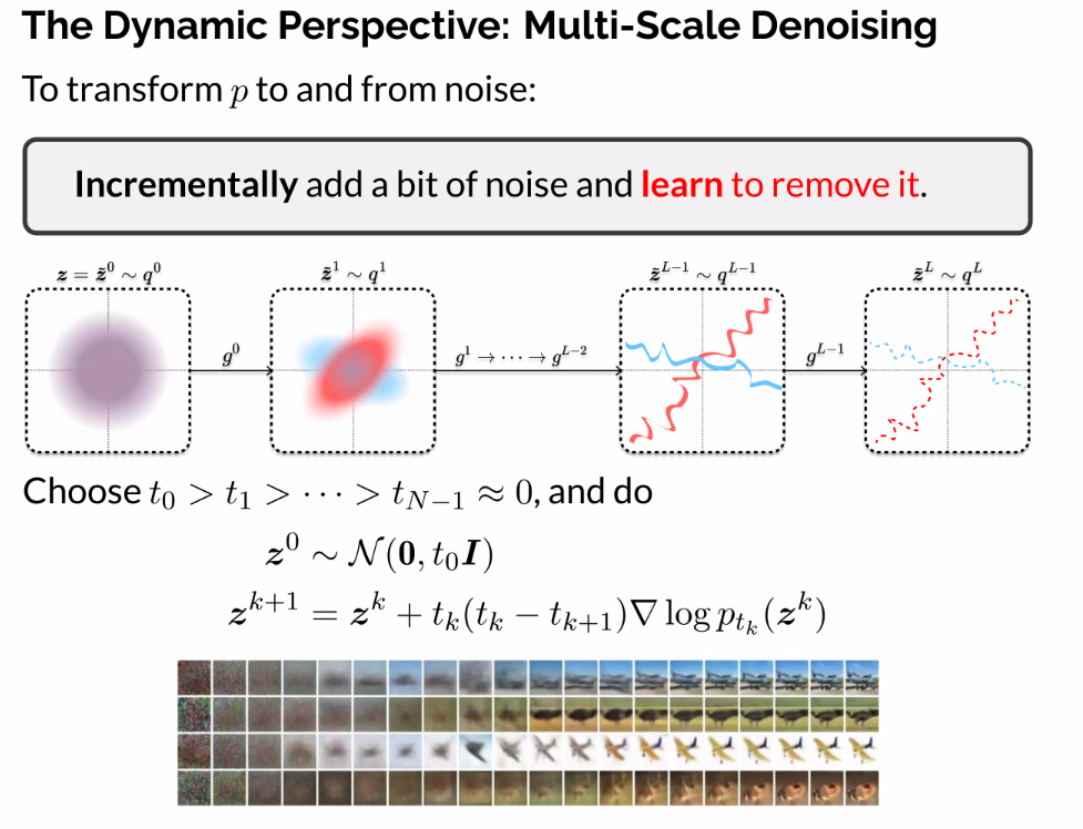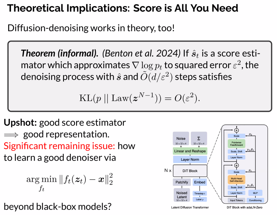 - The blue arrows are the score function (gradient log p), and pointing us towards the score of the data