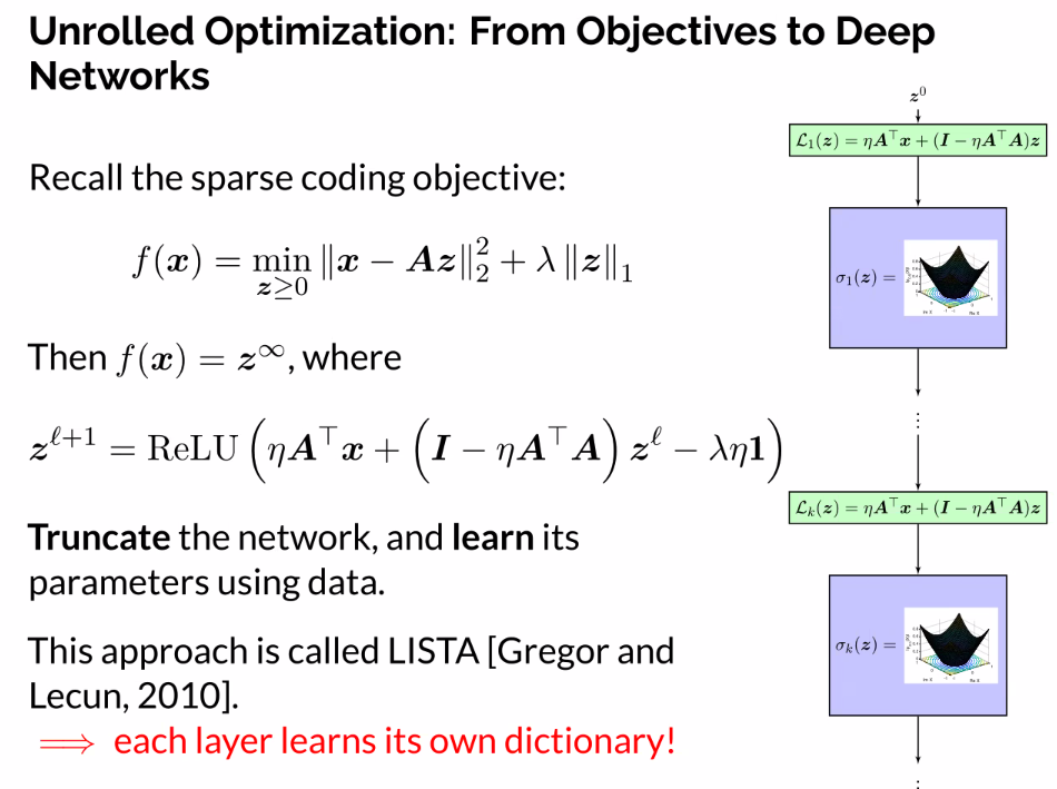 - Approach called LISTA, each layer learns its own dictionary