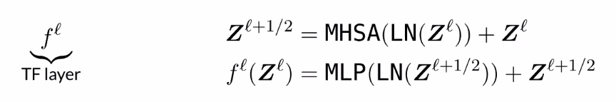 - Norm -> Multi head attention -> skip activation and norm -> MLP -> skip and output